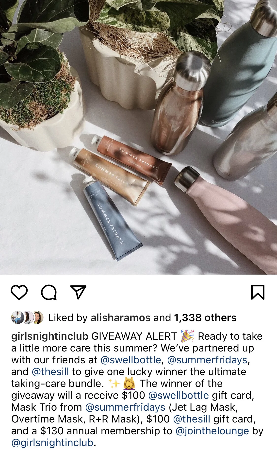 S’well x Summer Fridays x The Sill x Girls’ Night In Instagram. August 5, 2020.